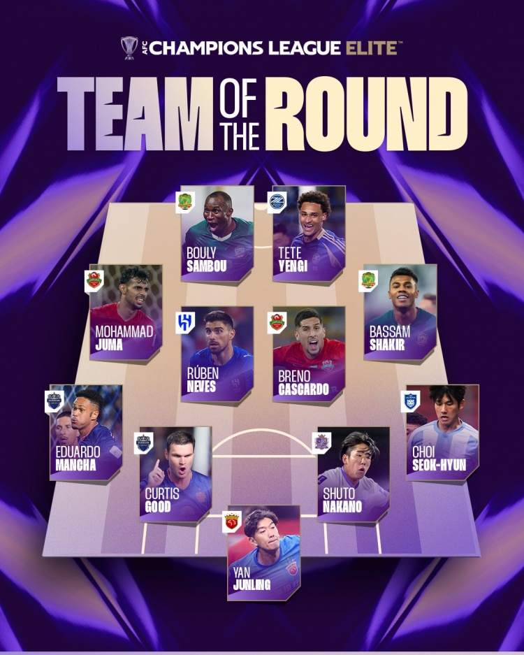 世界杯官方客户端-亚冠精英联赛第8轮最佳阵:颜骏凌、鲁本·内维斯、延吉入选